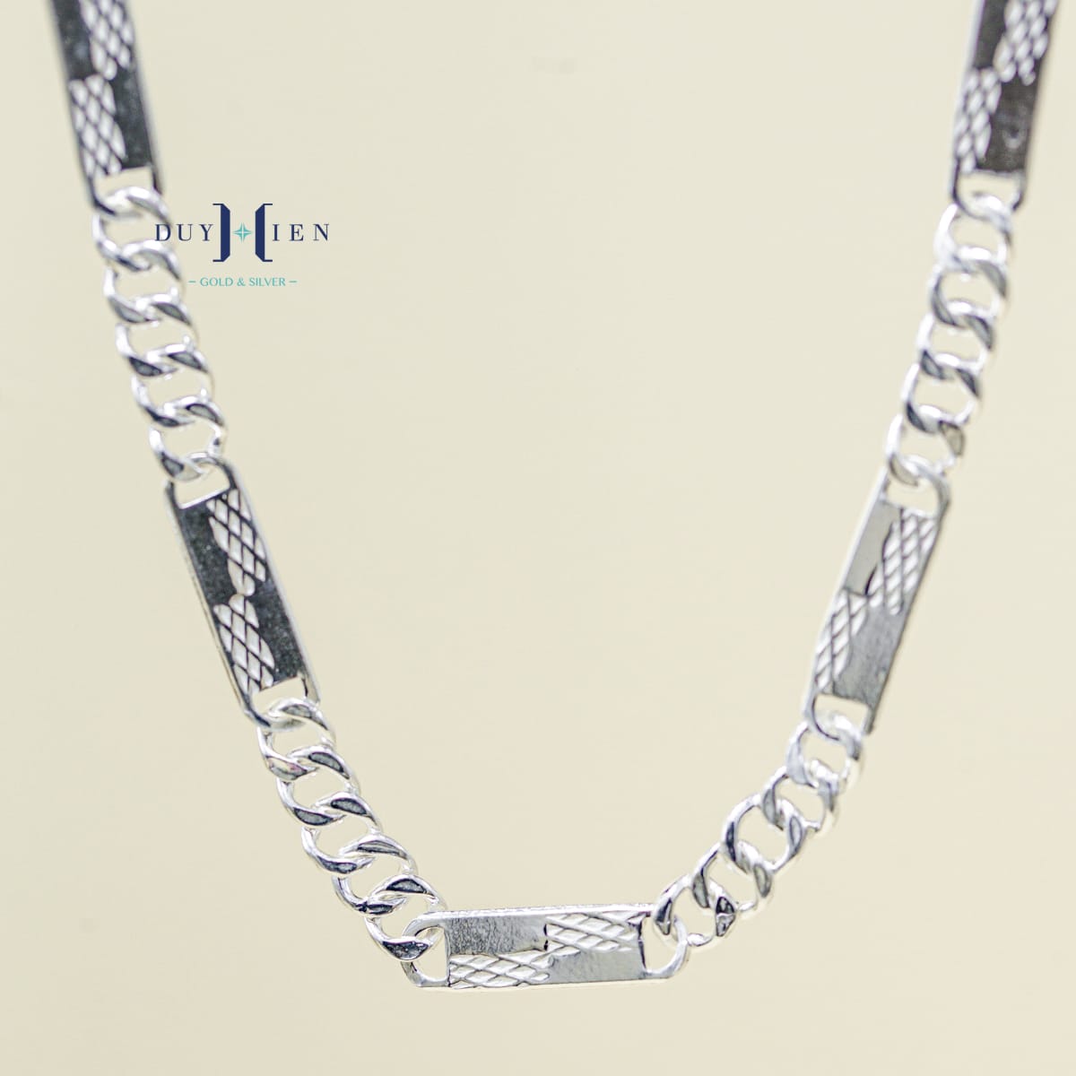 Dây chuyền có kiểu dáng Dạng mắt xích Vô cùng chắc chắn. Các mắt xích được hàn nối với nhau cẩn thận tỉ mỉ kỹ lưỡng. Bạn hoàn toàn yên tâm khi đeo kiểu dạng mắt xích này.