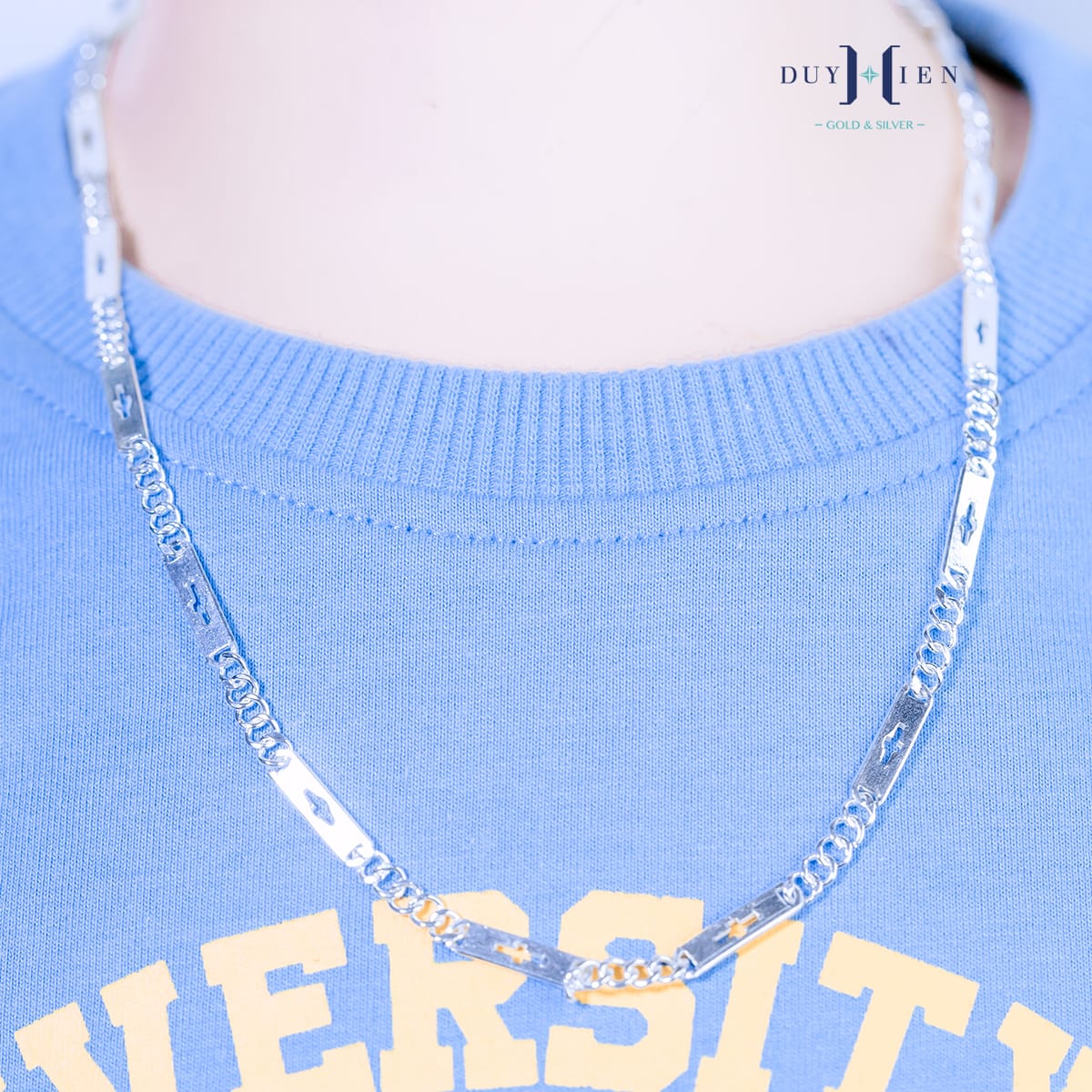 Dây chuyền có kiểu dáng Dạng mắt xích Vô cùng chắc chắn. Các mắt xích được hàn nối với nhau cẩn thận tỉ mỉ kỹ lưỡng. Bạn hoàn toàn yên tâm khi đeo kiểu dạng mắt xích này.