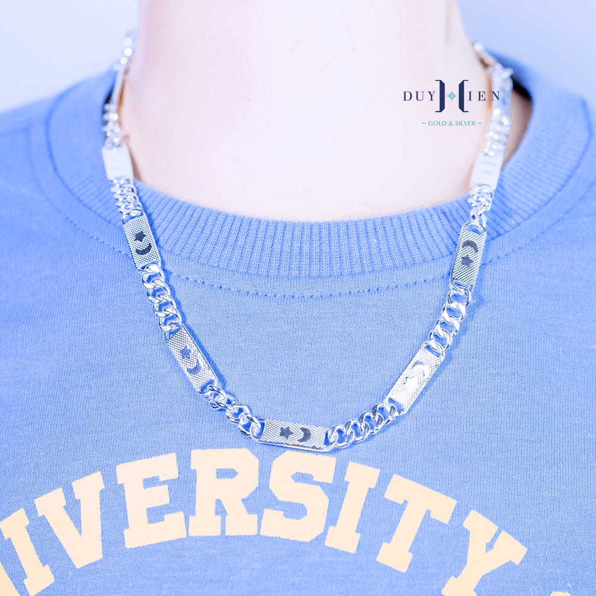 Dây chuyền có kiểu dáng Dạng mắt xích Vô cùng chắc chắn. Các mắt xích được hàn nối với nhau cẩn thận tỉ mỉ kỹ lưỡng. Bạn hoàn toàn yên tâm khi đeo kiểu dạng mắt xích này.