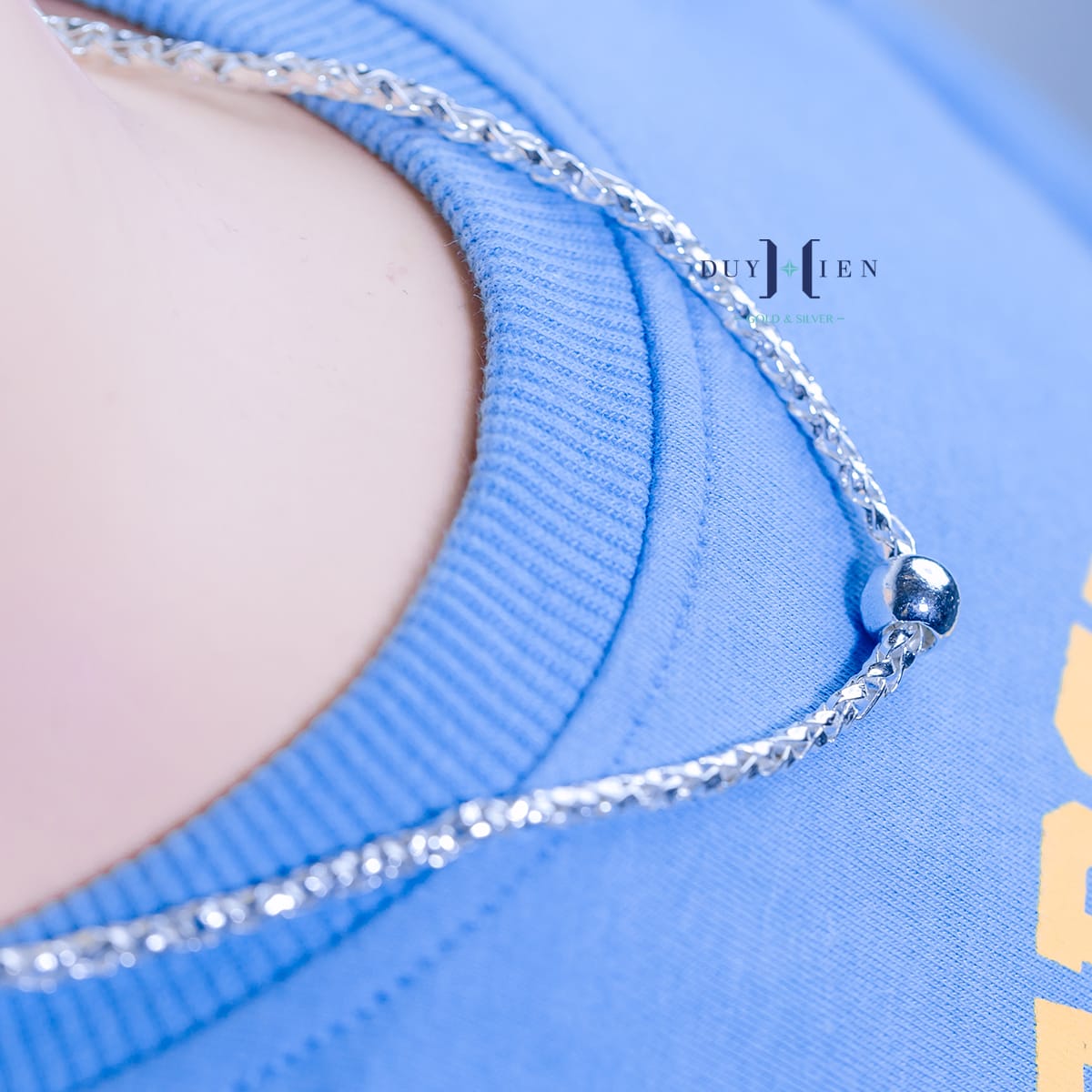 Dây chuyền được làm từ chất liệu nguyên bạc ta không phủ bất kỳ lớp si mạ nào vì vậy bạc có thể tiếp xúc trực tiếp với da, tương tác tốt với cơ thể người đeo. Có thể dùng để đánh cảm đánh gió cực tốt cho sức khỏe. Bạc ta màu trắng đục đặc trưng, bền màu, hạn chế xỉn đen và có một tính chất vượt trội là vô cùng dễ dàng làm sáng, dễ đánh bóng, dễ dàng chế tác, sửa chữa và gia công. Vì vậy khi sản phẩm của bạn được làm từ chất liệu bạc ta thì xin chúc mừng bạn sẽ hoàn toàn yên tâm sở hữu một món trang sức vô cùng quý giá.