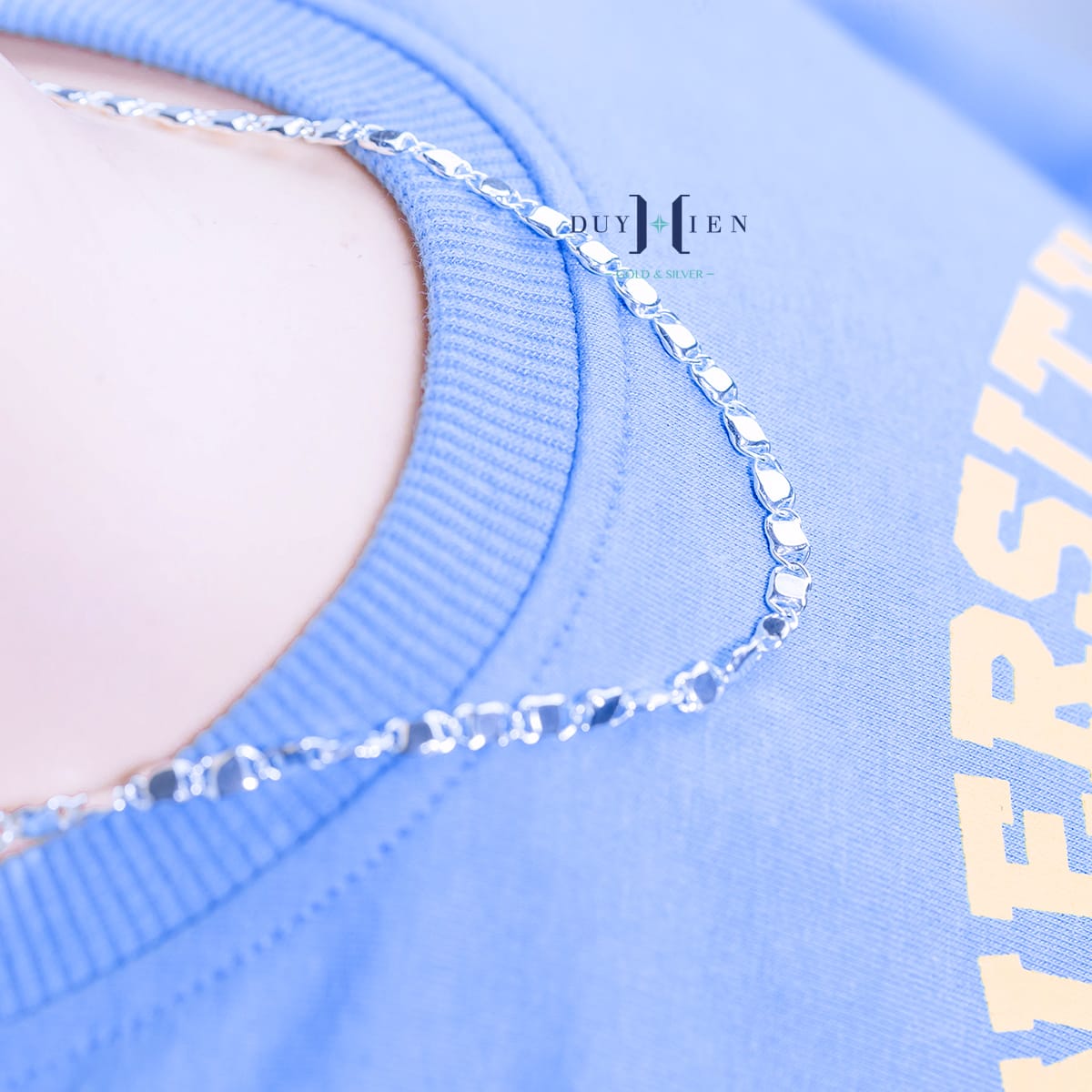 Dây Chuyền Bạc Cho Bé Kiểu Dây Mè Dẹt Chắc Chắn Nhiều Style là mẫu dây chuyền hoàn hảo giúp các bé tự tin hơn, tỏa sáng hơn, nổi bật hơn và khỏe khoắn hơn.