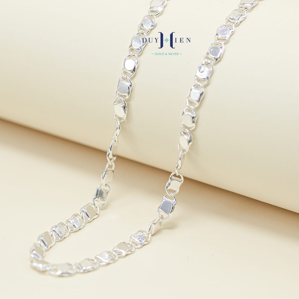 Dây chuyền được làm từ chất liệu nguyên bạc ta không phủ bất kỳ lớp si mạ nào vì vậy bạc có thể tiếp xúc trực tiếp với da, tương tác tốt với cơ thể người đeo. Có thể dùng để đánh cảm đánh gió cực tốt cho sức khỏe. Bạc ta màu trắng đục đặc trưng, bền màu, hạn chế xỉn đen và có một tính chất vượt trội là vô cùng dễ dàng làm sáng, dễ đánh bóng, dễ dàng chế tác, sửa chữa và gia công. Vì vậy khi sản phẩm của bạn được làm từ chất liệu bạc ta thì xin chúc mừng bạn sẽ hoàn toàn yên tâm sở hữu một món trang sức vô cùng quý giá.