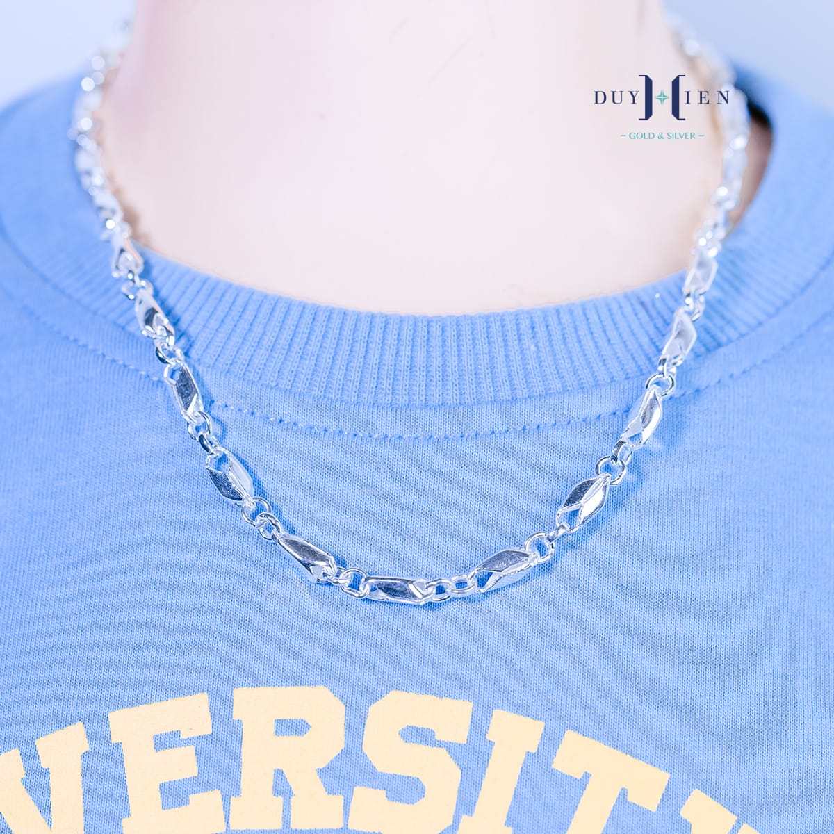 Dây chuyền có kiểu dáng Dạng dây đúc Đa dạng nhiều tạo hình cho từng mắt dây. Vô cùng ấn tượng, khỏe khoắn, trẻ trung và nổi bật lại siêu chắc chắn dễ làm sáng đánh bóng.