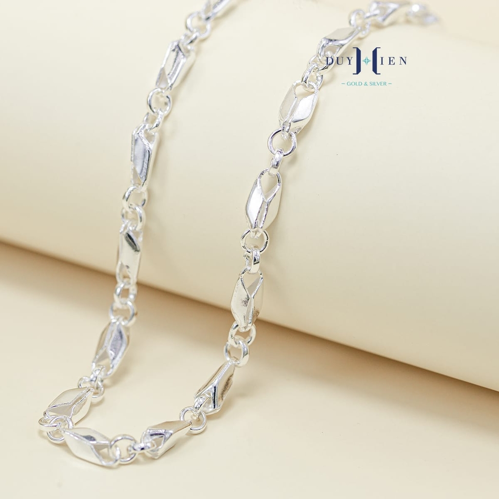 Dây chuyền được làm từ chất liệu nguyên bạc ta không phủ bất kỳ lớp si mạ nào vì vậy bạc có thể tiếp xúc trực tiếp với da, tương tác tốt với cơ thể người đeo. Có thể dùng để đánh cảm đánh gió cực tốt cho sức khỏe. Bạc ta màu trắng đục đặc trưng, bền màu, hạn chế xỉn đen và có một tính chất vượt trội là vô cùng dễ dàng làm sáng, dễ đánh bóng, dễ dàng chế tác, sửa chữa và gia công. Vì vậy khi sản phẩm của bạn được làm từ chất liệu bạc ta thì xin chúc mừng bạn sẽ hoàn toàn yên tâm sở hữu một món trang sức vô cùng quý giá.