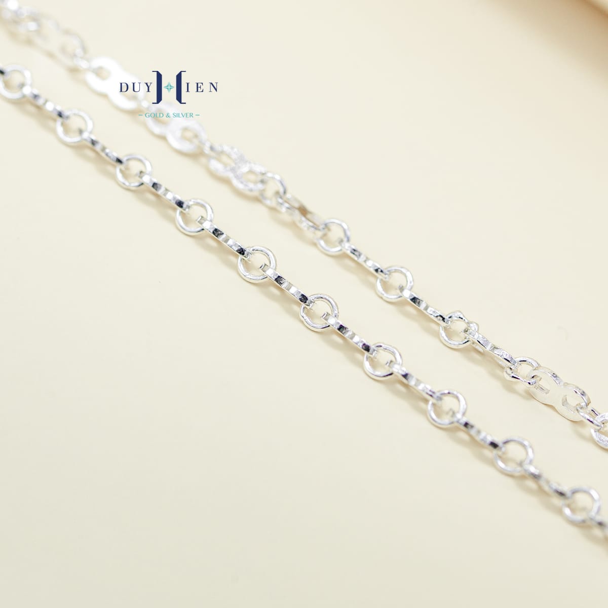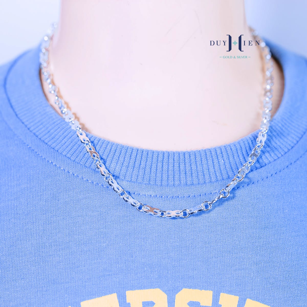 Dây chuyền có kiểu dáng Dạng mắt xích Vô cùng chắc chắn. Các mắt xích được hàn nối với nhau cẩn thận tỉ mỉ kỹ lưỡng. Bạn hoàn toàn yên tâm khi đeo kiểu dạng mắt xích này.