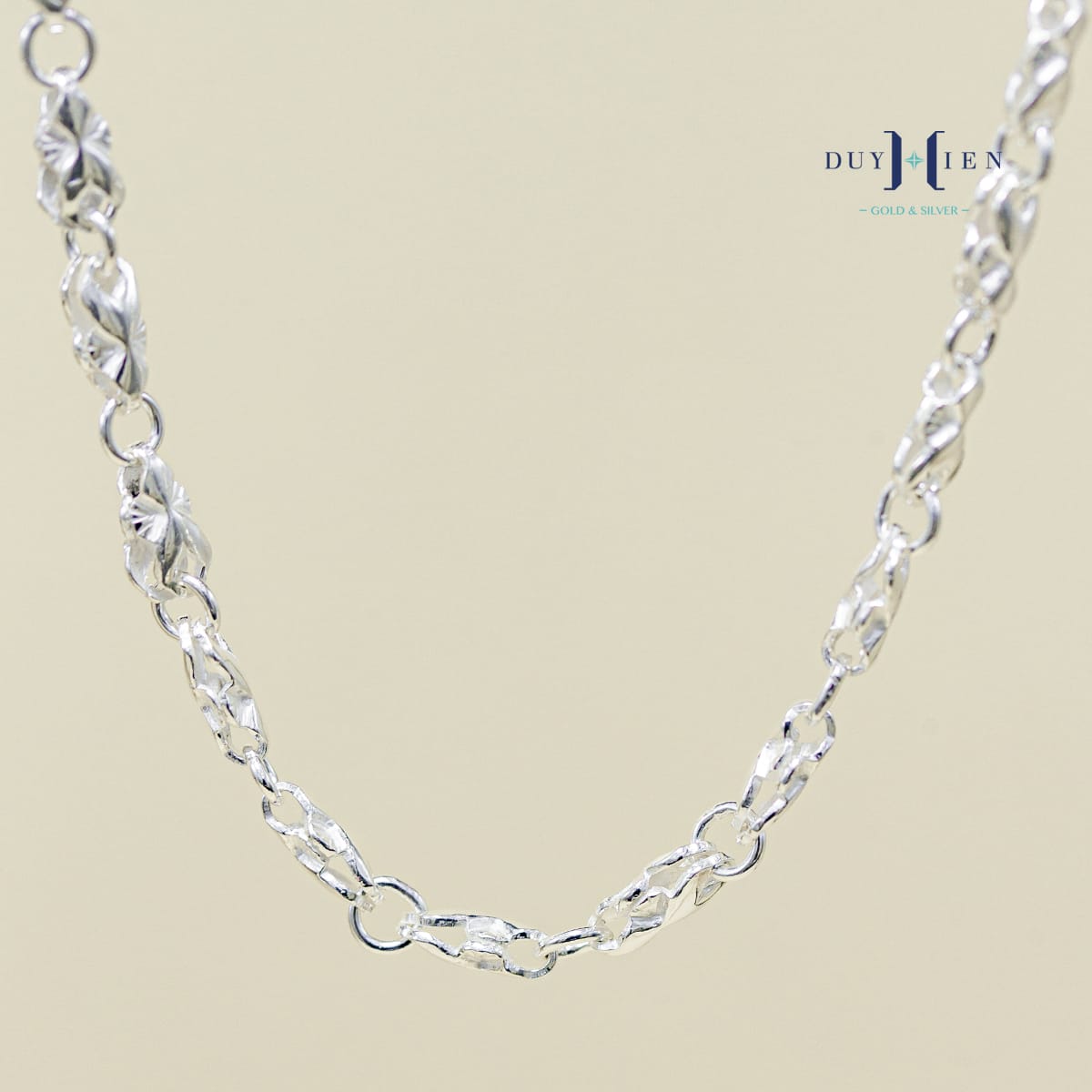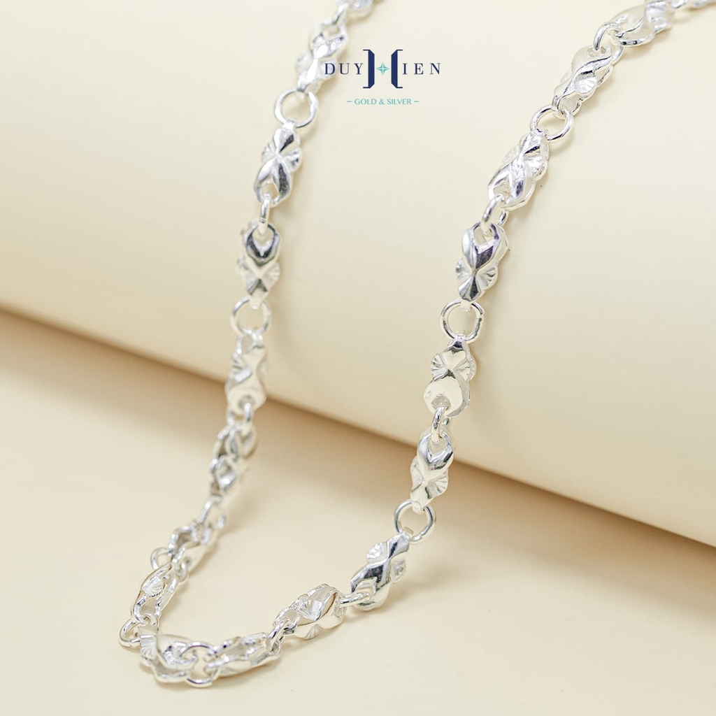 Dây chuyền có kiểu dáng Dạng mắt xích Vô cùng chắc chắn. Các mắt xích được hàn nối với nhau cẩn thận tỉ mỉ kỹ lưỡng. Bạn hoàn toàn yên tâm khi đeo kiểu dạng mắt xích này.