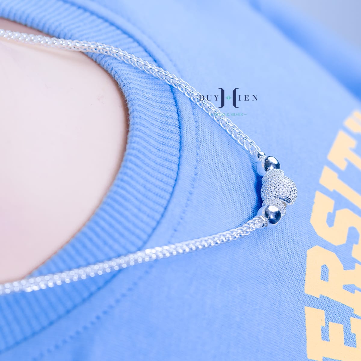 Dây chuyền được làm từ chất liệu nguyên bạc ta không phủ bất kỳ lớp si mạ nào vì vậy bạc có thể tiếp xúc trực tiếp với da, tương tác tốt với cơ thể người đeo. Có thể dùng để đánh cảm đánh gió cực tốt cho sức khỏe. Bạc ta màu trắng đục đặc trưng, bền màu, hạn chế xỉn đen và có một tính chất vượt trội là vô cùng dễ dàng làm sáng, dễ đánh bóng, dễ dàng chế tác, sửa chữa và gia công. Vì vậy khi sản phẩm của bạn được làm từ chất liệu bạc ta thì xin chúc mừng bạn sẽ hoàn toàn yên tâm sở hữu một món trang sức vô cùng quý giá.