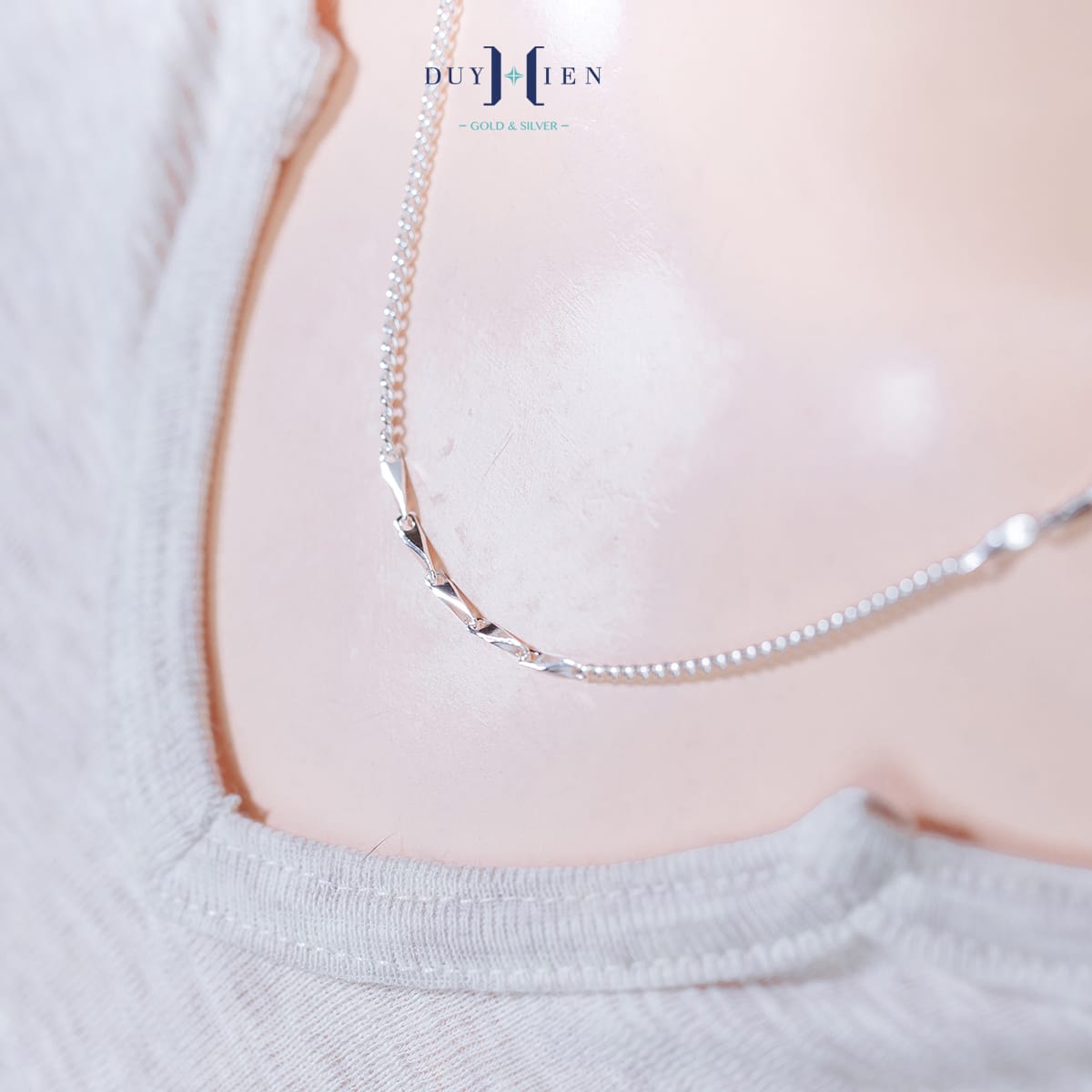 Dây chuyền nữ luôn là một trong những nhóm trang sức được các quý khách của Duy Hiển quan tâm săn đón vì tính chất dễ đeo, dễ kết hợp và dễ lựa chọn kiểu dáng mẫu mã. Dây Chuyền Bạc Nữ Kiểu Dây Đơn Mix Sợi Đặc Nhỏ Xinh Xắn là một trong những sự lựa chọn hàng đầu hoàn hảo giúp phái nữ thể hiện phong cách, đẳng cấp, sự tự tin hay đơn giản là cá tính độc đáo của riêng mình.