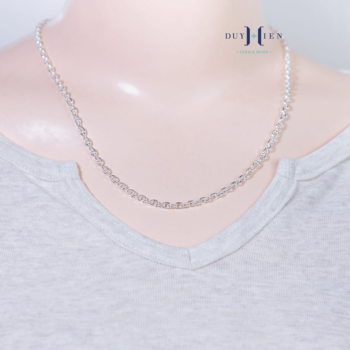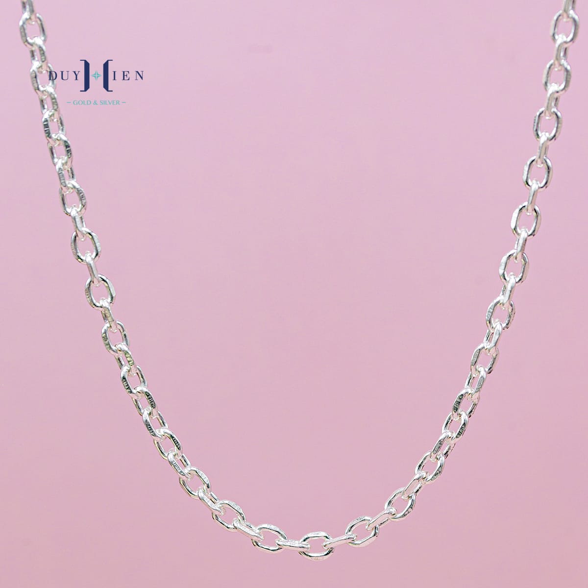 Dây chuyền có kiểu dáng Dạng mắt xích Vô cùng chắc chắn. Các mắt xích được hàn nối với nhau cẩn thận tỉ mỉ kỹ lưỡng. Bạn hoàn toàn yên tâm khi đeo kiểu dạng mắt xích này.