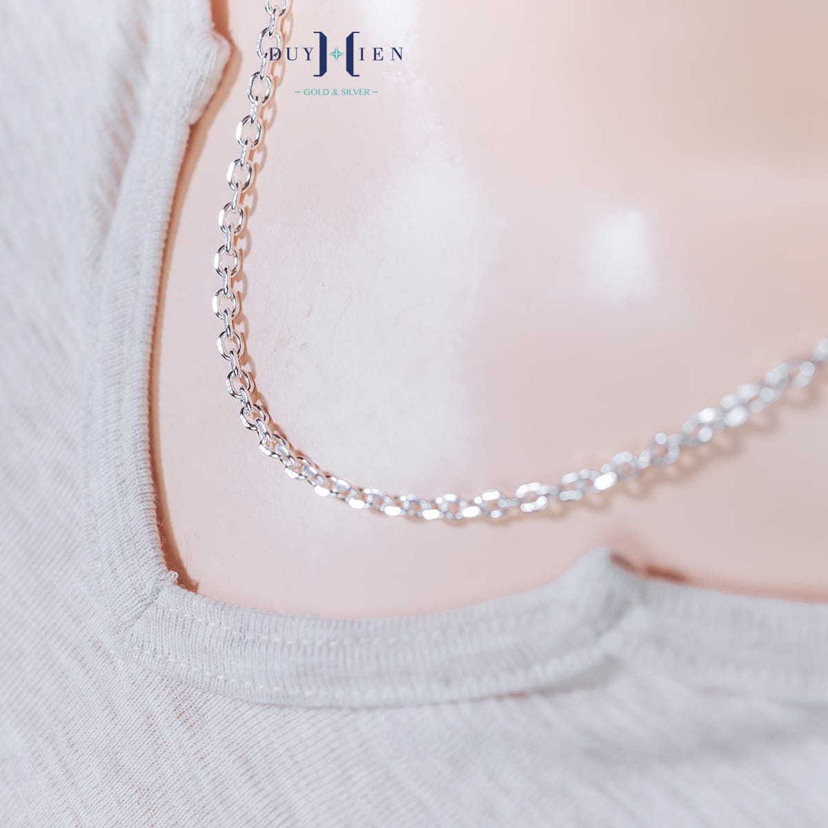 Dây Chuyền Bạc Nữ Mắt Xích Vuông Cứng Cáp Chắc Chắn rất dễ đeo và phù hợp với hầu hết các dáng cổ không kể dáng cổ tròn hay cổ gầy, cổ cao hay cổ ngắn.