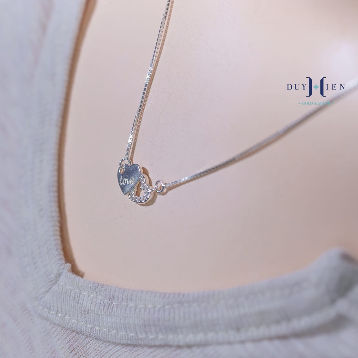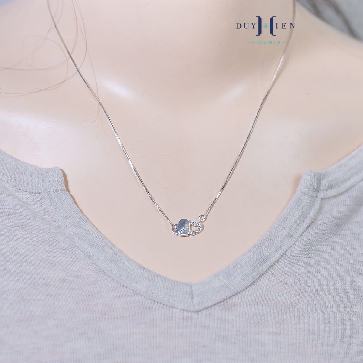 Dây chuyền nữ luôn là một trong những nhóm trang sức được các quý khách của Duy Hiển quan tâm săn đón vì tính chất dễ đeo, dễ kết hợp và dễ lựa chọn kiểu dáng mẫu mã. Dây Chuyền Bạc Nữ Trái Tim Đôi Chữ Love là một trong những sự lựa chọn hàng đầu hoàn hảo giúp phái nữ thể hiện phong cách, đẳng cấp, sự tự tin hay đơn giản là cá tính độc đáo của riêng mình.