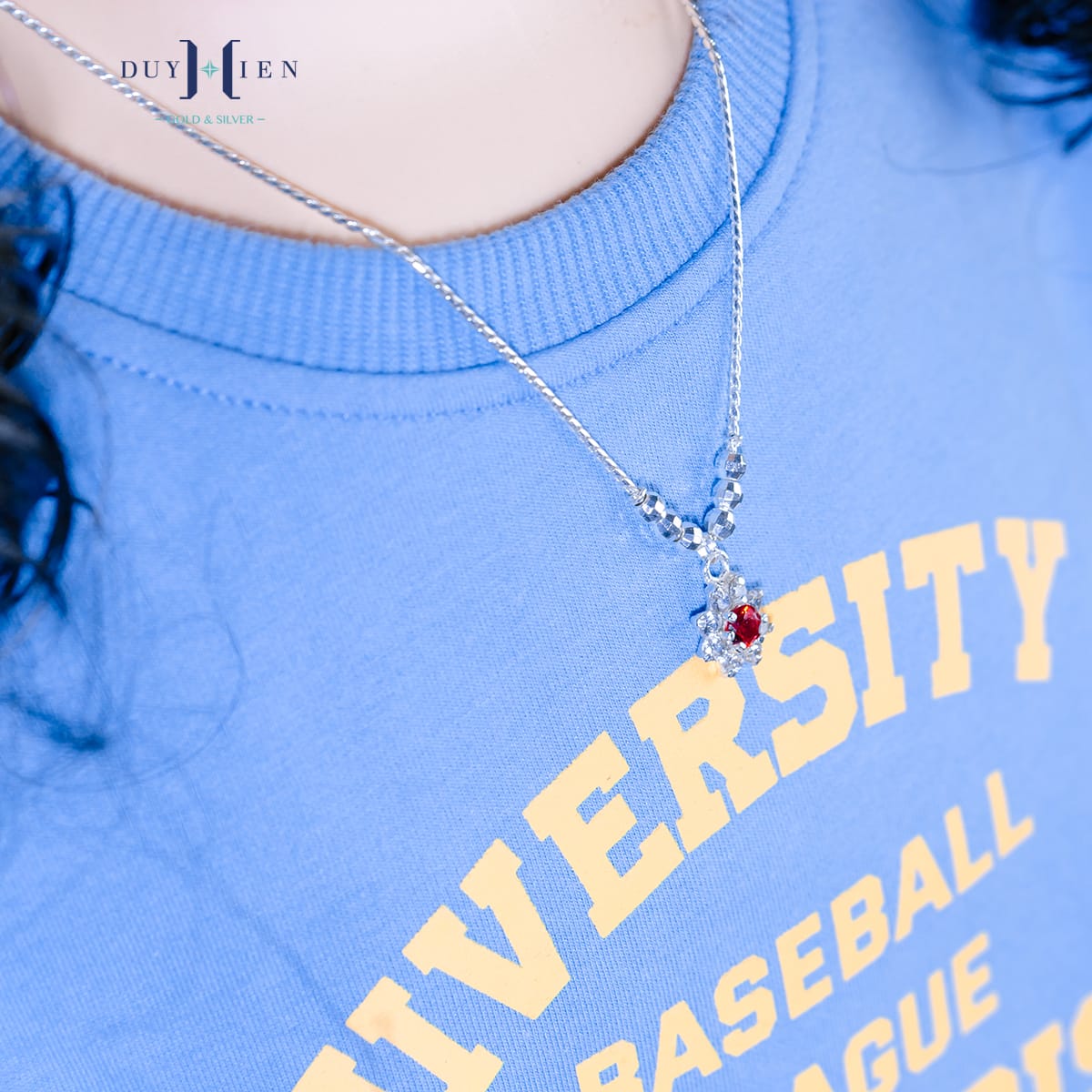 Giải Mã Sức hút của Dây Chuyền Bạc S990 Cho Bé Gái Hoa 8 Cánh Nhụy Đá Đỏ Nổi Bật