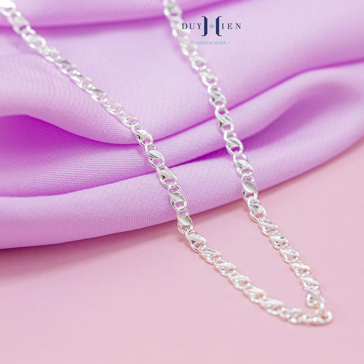 Dây chuyền có kiểu dáng Dạng mắt xích Vô cùng chắc chắn. Các mắt xích được hàn nối với nhau cẩn thận tỉ mỉ kỹ lưỡng. Bạn hoàn toàn yên tâm khi đeo kiểu dạng mắt xích này.
