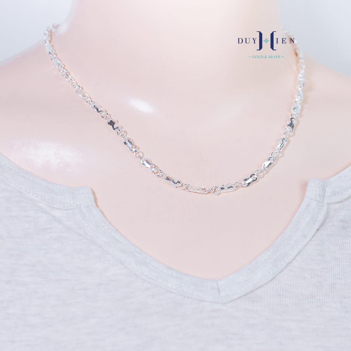 Dây chuyền được làm từ chất liệu nguyên bạc ta không phủ bất kỳ lớp si mạ nào vì vậy bạc có thể tiếp xúc trực tiếp với da, tương tác tốt với cơ thể người đeo. Có thể dùng để đánh cảm đánh gió cực tốt cho sức khỏe. Bạc ta màu trắng đục đặc trưng, bền màu, hạn chế xỉn đen và có một tính chất vượt trội là vô cùng dễ dàng làm sáng, dễ đánh bóng, dễ dàng chế tác, sửa chữa và gia công. Vì vậy khi sản phẩm của bạn được làm từ chất liệu bạc ta thì xin chúc mừng bạn sẽ hoàn toàn yên tâm sở hữu một món trang sức vô cùng quý giá.