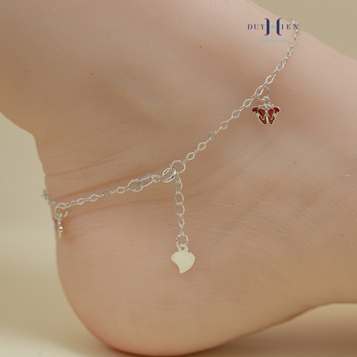 Lắc chân được làm từ chất liệu bạc S925 (92.5% bạc và 6.5% kim loại khác) được sản xuất theo công nghệ cao cấp. Hàm lượng bạc cao chuẩn tuổi tiếp xúc với da người đeo cực tốt cho sức khỏe.
