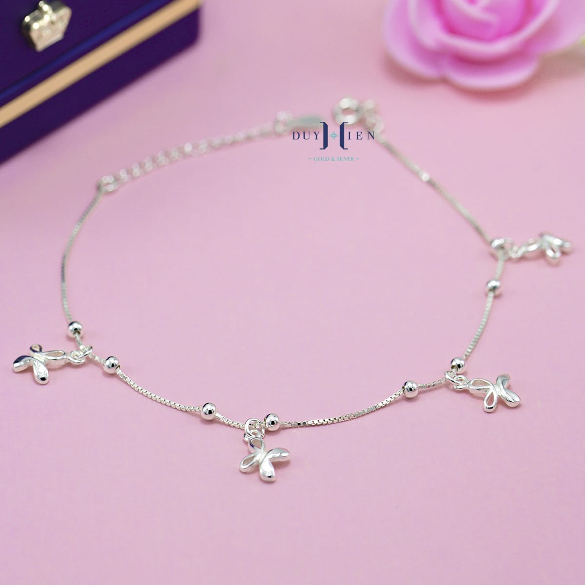 Lắc Chân Bạc Nữ S925 Dạng Sợi Mì Hình Cánh Bướm ắt hẳn sẽ là sự lựa chọn tuyệt vời không thể thiếu của các chị em trong công việc, cuộc sống sinh hoạt hàng ngày hay trong những buổi tiệc tùng dã ngoại.