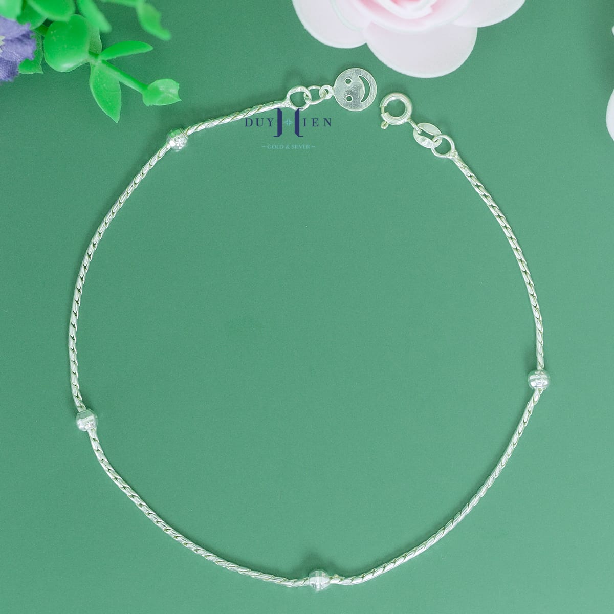 Lắc chân được làm từ chất liệu bạc S925 (92.5% bạc và 6.5% kim loại khác) được sản xuất theo công nghệ cao cấp. Hàm lượng bạc cao chuẩn tuổi tiếp xúc với da người đeo cực tốt cho sức khỏe.