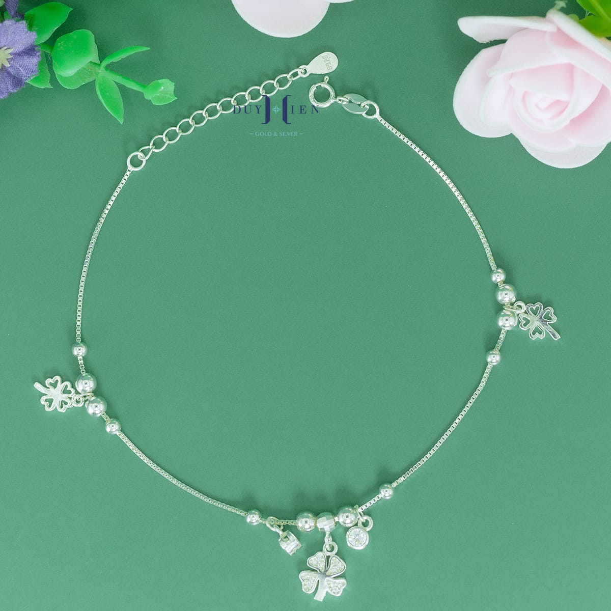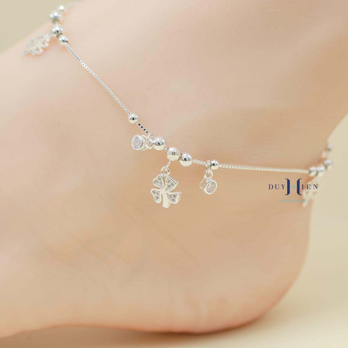 Lắc Chân Bạc Nữ S925 Dạng Sợi Mì Vuông Cỏ 4 Lá Đính Đá Xinh Xắn ắt hẳn sẽ là sự lựa chọn tuyệt vời không thể thiếu của các chị em trong công việc, cuộc sống sinh hoạt hàng ngày hay trong những buổi tiệc tùng dã ngoại.