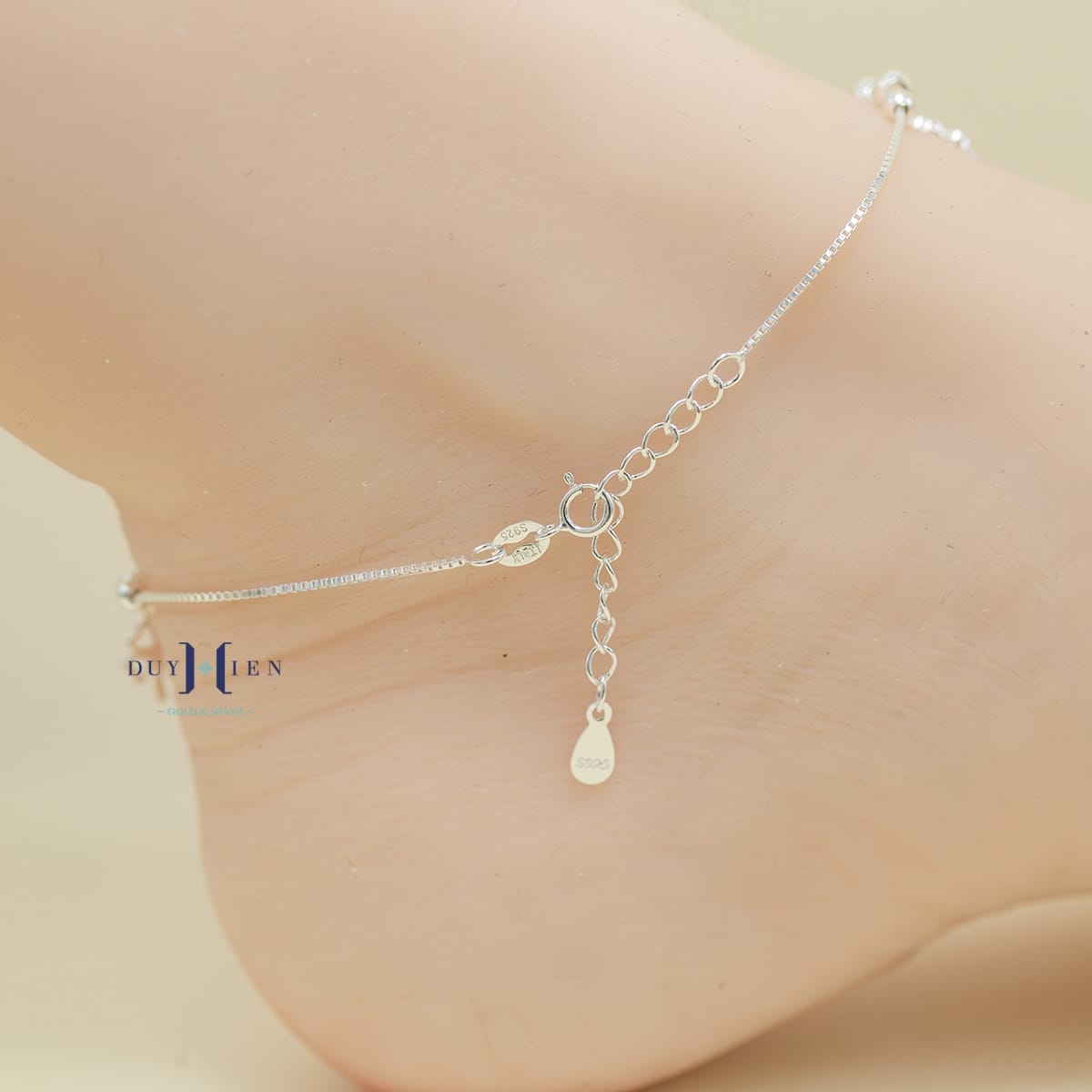 Lắc chân được làm từ chất liệu bạc S925 (92.5% bạc và 6.5% kim loại khác) được sản xuất theo công nghệ cao cấp. Hàm lượng bạc cao chuẩn tuổi tiếp xúc với da người đeo cực tốt cho sức khỏe.