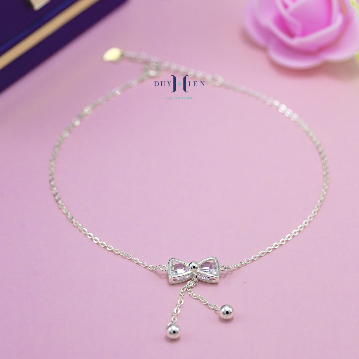 Lắc Chân Bạc Nữ S925 Hình Chiếc Nơ Đá Trắng Xinh Xắn là sự lựa chọn hoàn hảo giúp các nàng trở nên cuốn hút yêu kiều trẻ trung hơn bao giờ hết.