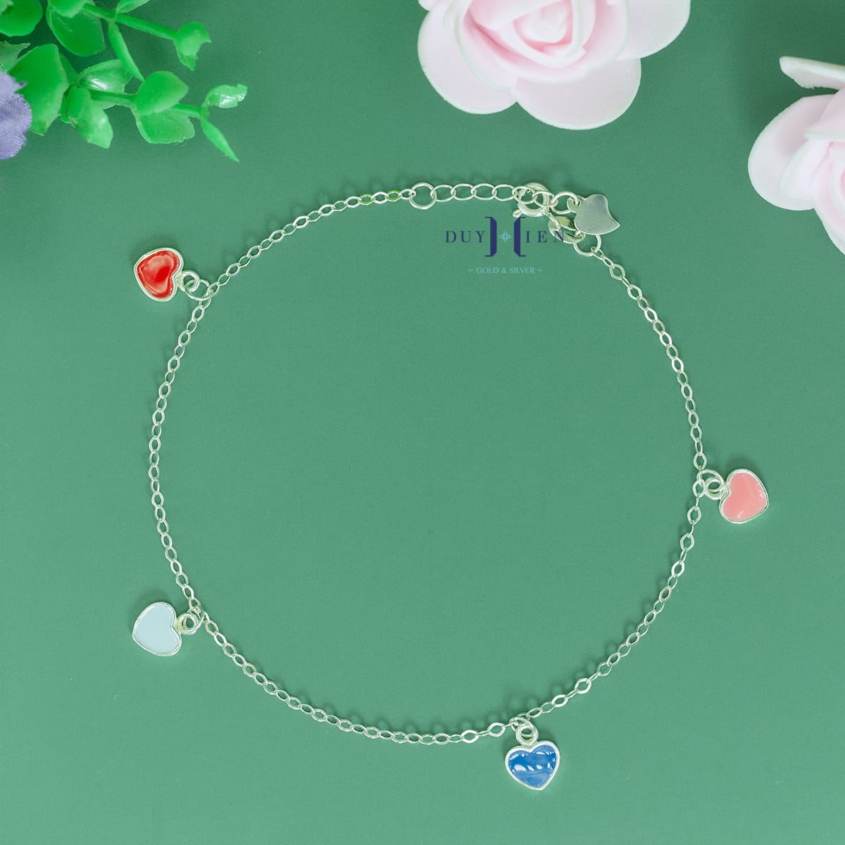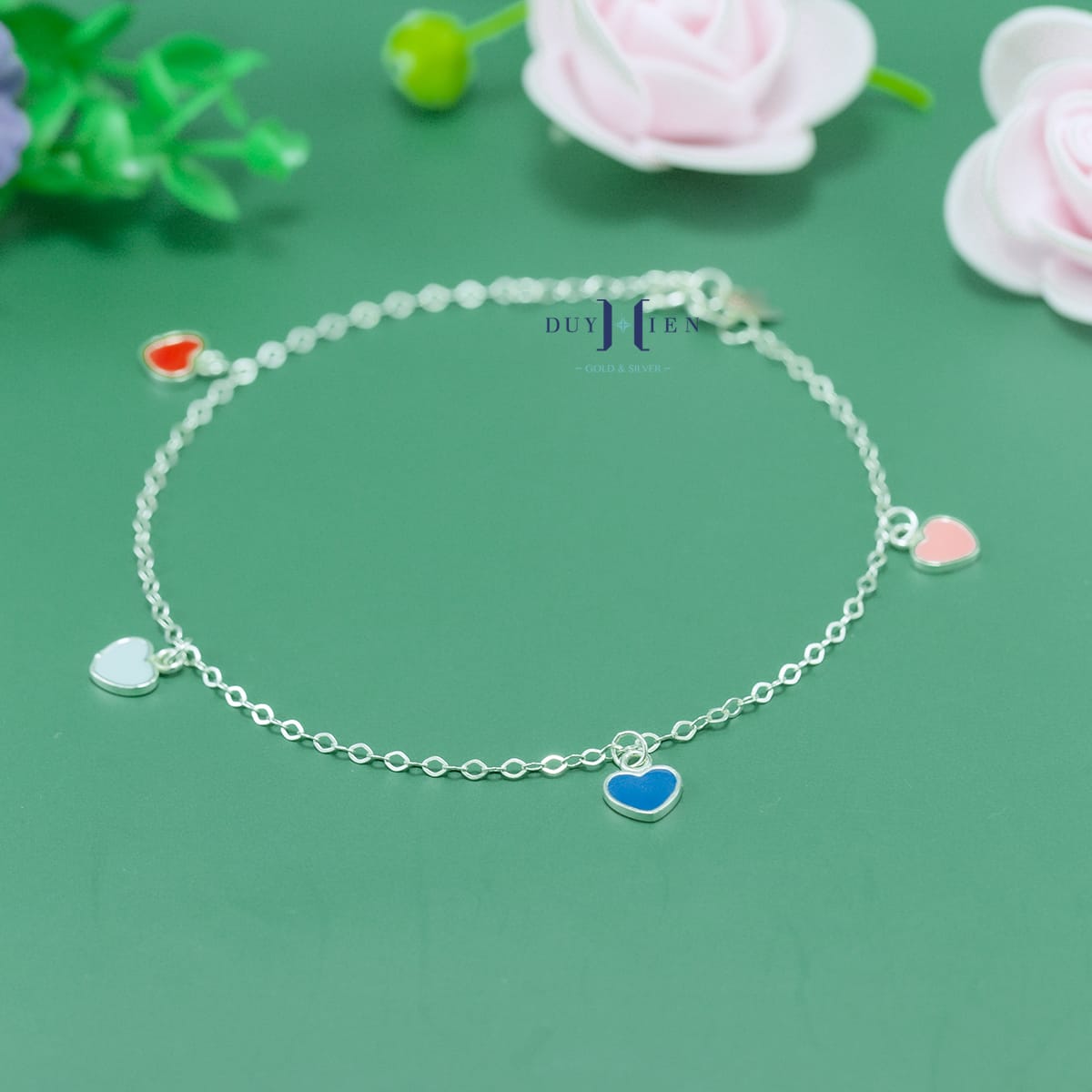 Lắc Chân Bạc Nữ S925 Trái Tim Nhiều Màu Sắc Xinh Xắn ắt hẳn sẽ là sự lựa chọn tuyệt vời không thể thiếu của các chị em trong công việc, cuộc sống sinh hoạt hàng ngày hay trong những buổi tiệc tùng dã ngoại.