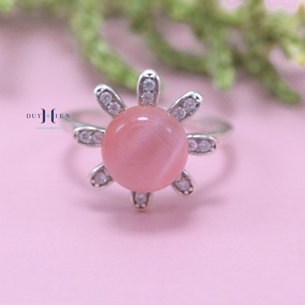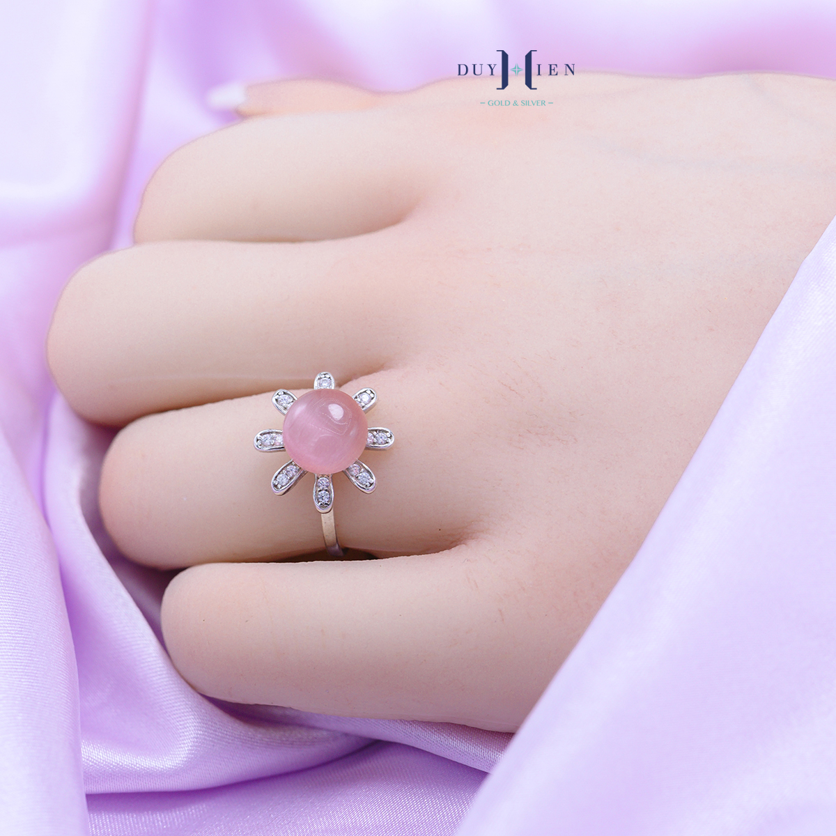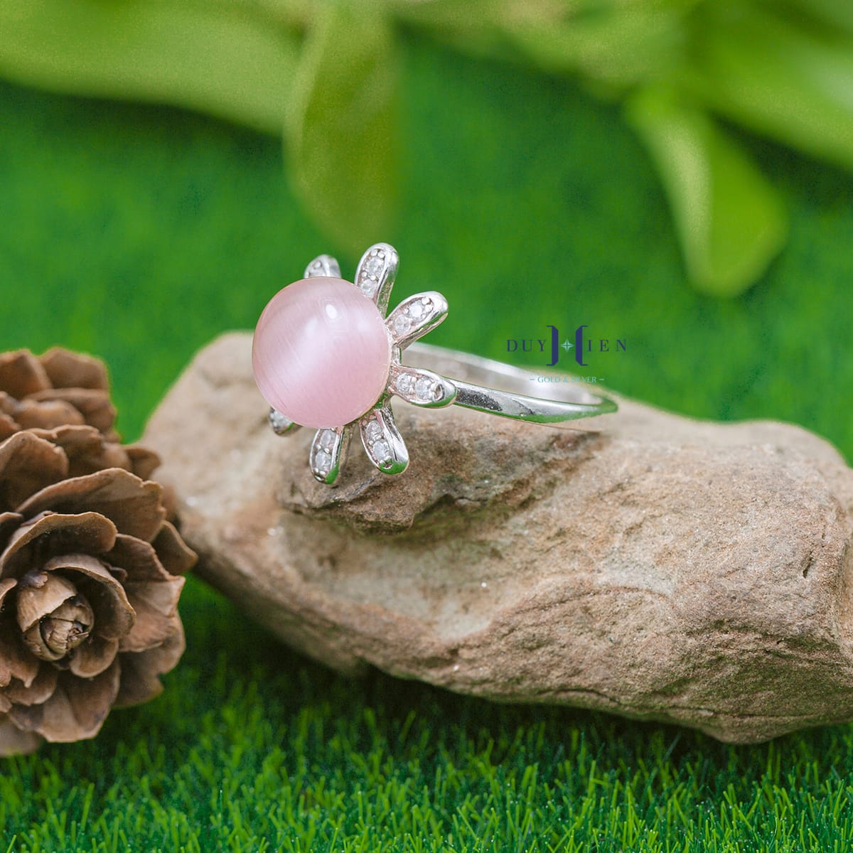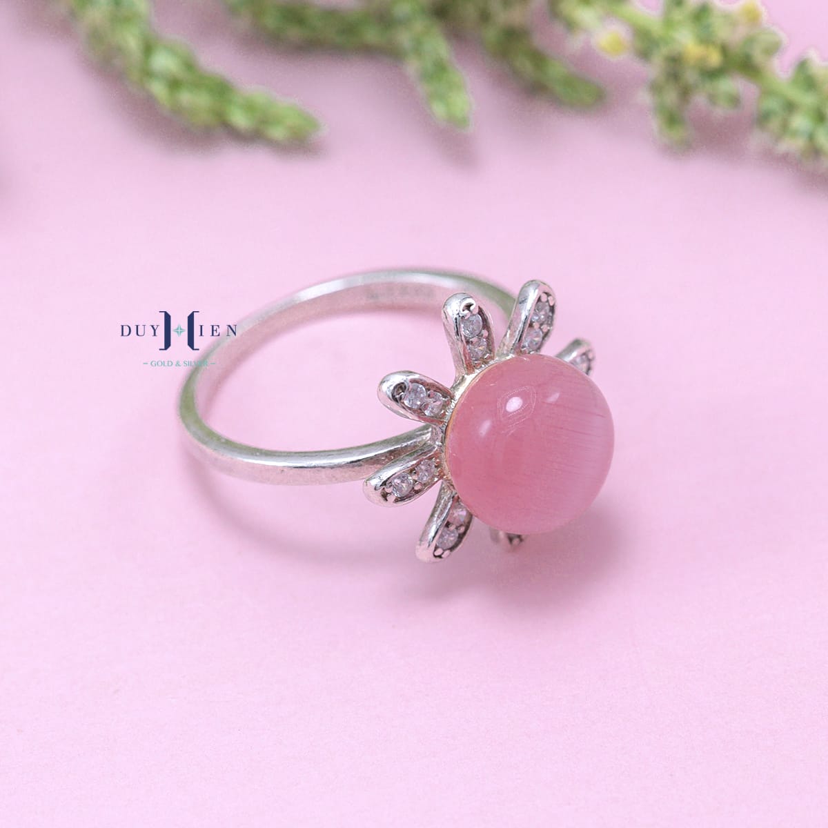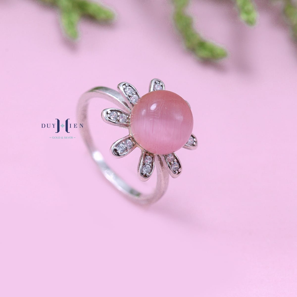 Giải Mã Sức hút của Nhẫn Bạc Nữ Phong Thủy Đá Hồng Hình Bông Hoa