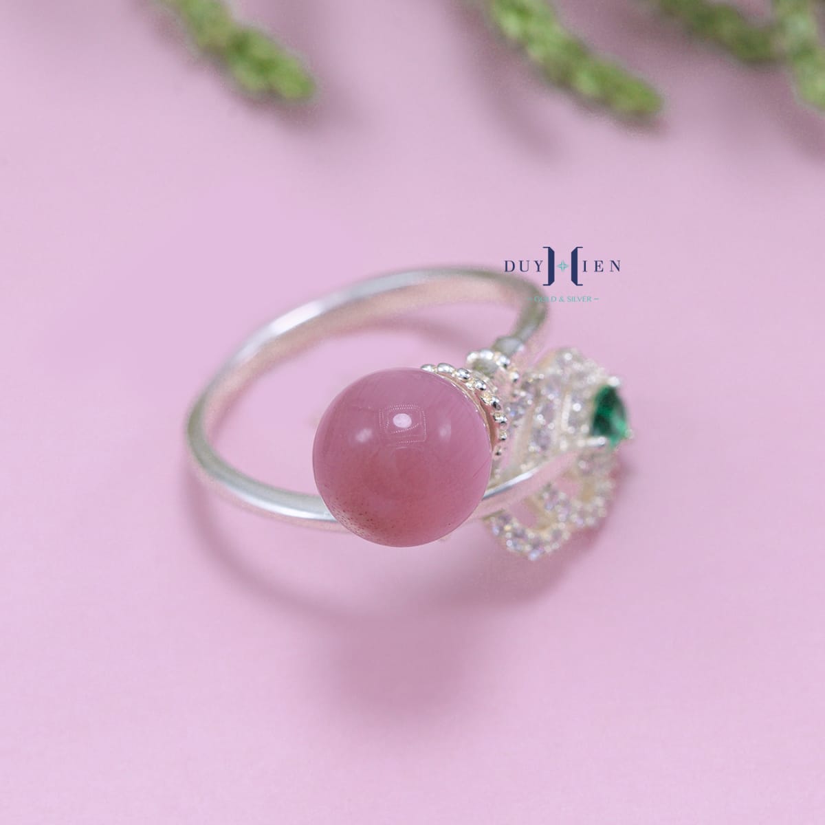 Giải Mã Sức hút của Nhẫn Bạc Nữ Phong Thủy Đá Tròn Hồng