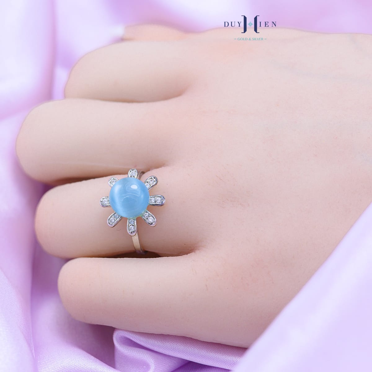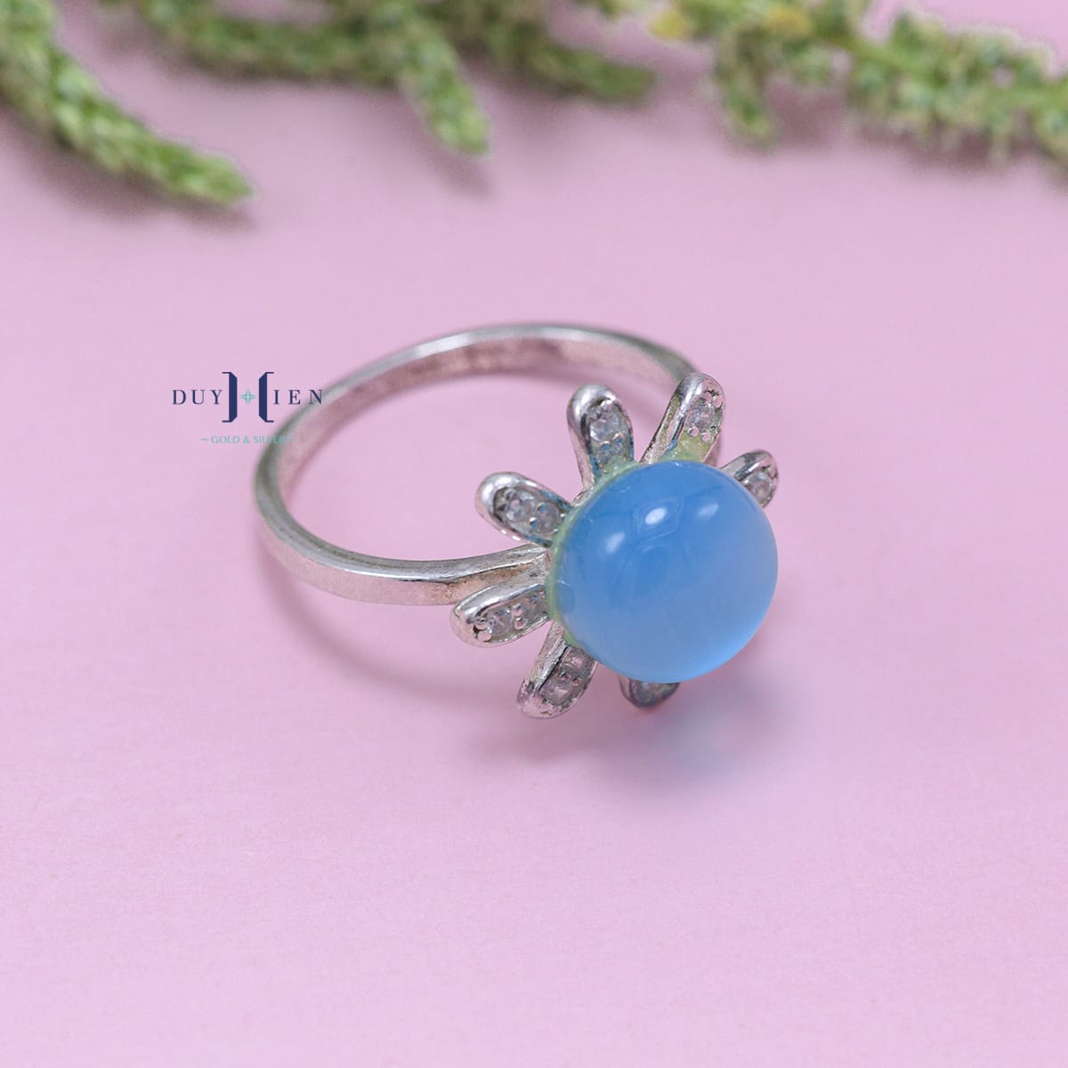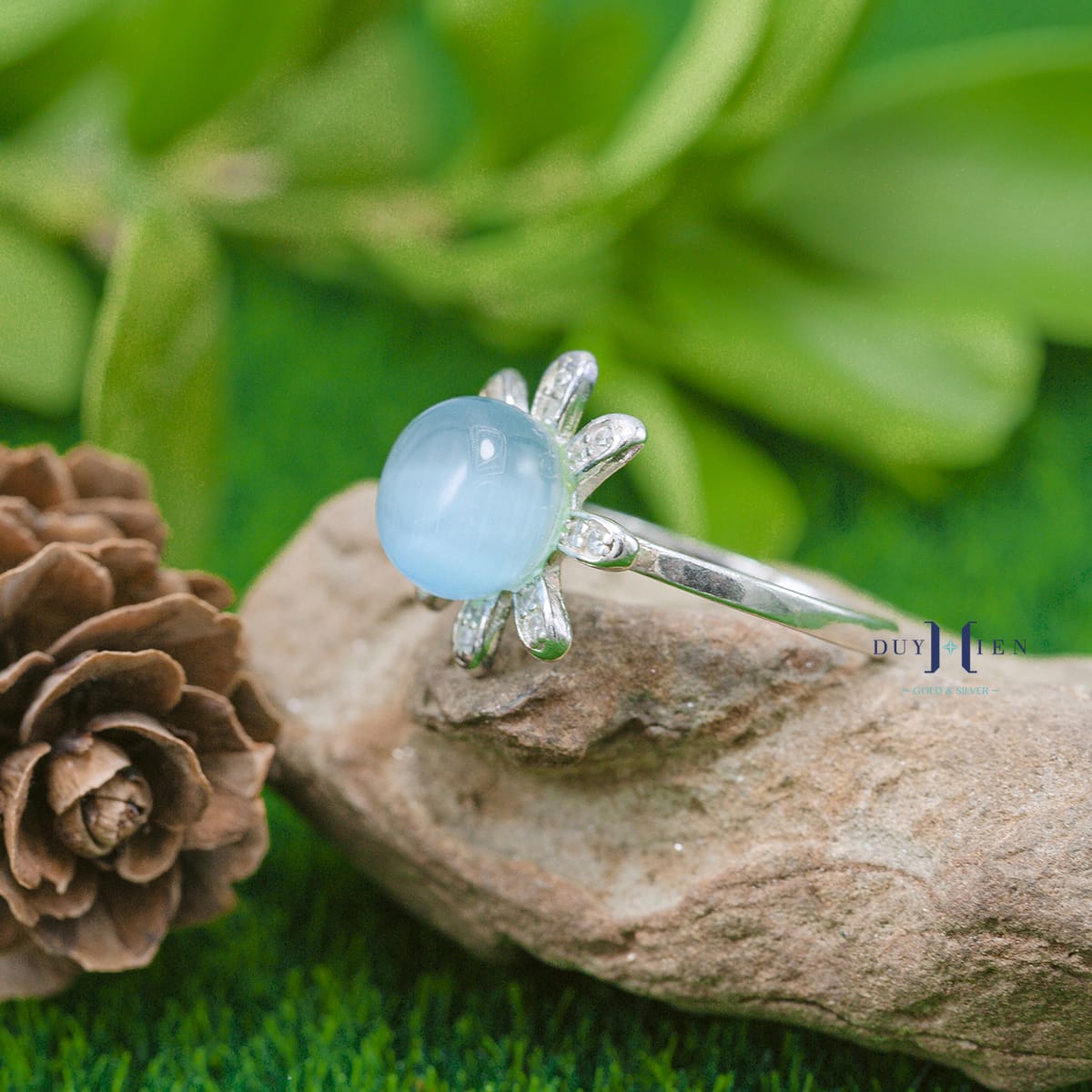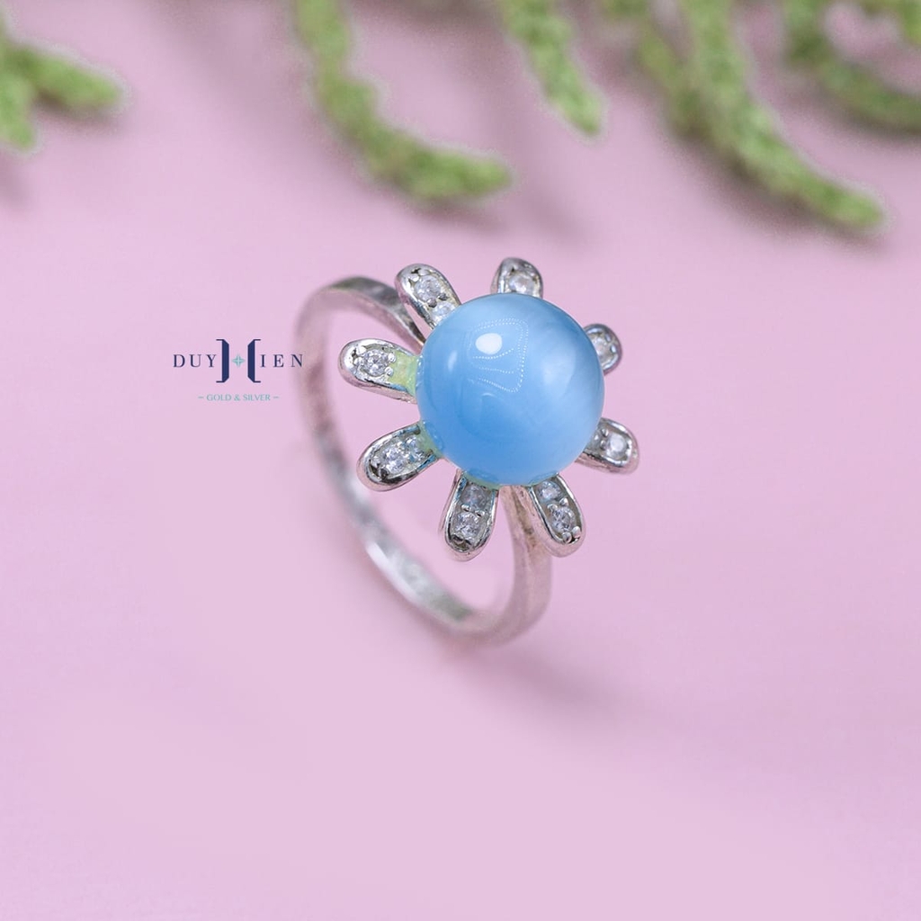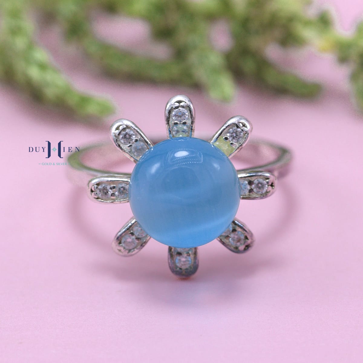 Giải Mã Sức hút của Nhẫn Bạc Nữ Phong Thủy Đá Xanh Dương Hình Bông Hoa