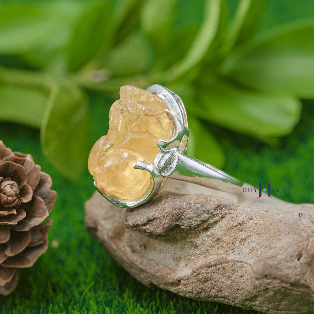 Nhẫn đá phong thủy cho nữ luôn là một trong những món trang sức sang trọng có sức hút không hề nhỏ với các chị em. Một chiếc nhẫn với viên đá phong thủy nổi bật màu sắc phù hợp mang lại may mắn tài lộc luôn được các quý cô tại Duy Hiển quan tâm săn đón nhiệt tình. Nhẫn Bạc Nữ Phong Thủy Tỳ Hưu Mệnh Kim hứa hẹn sẽ đem đến cho các chị em vẻ ngoài nổi bật, đầy khí chất đồng thời tự tin thế hiện phong cách cá tính của riêng mình.